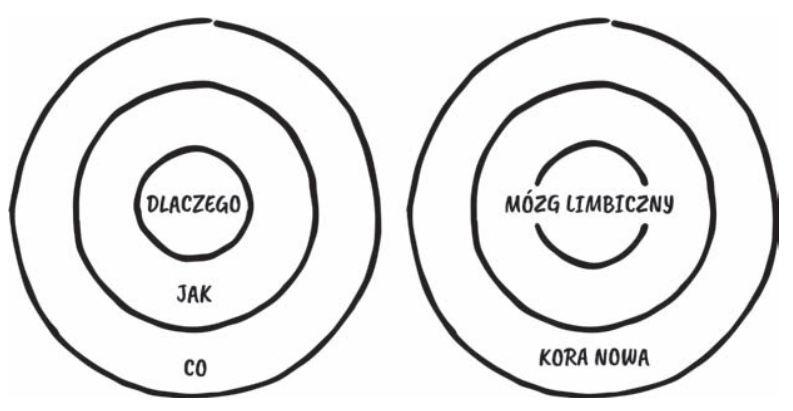 Samo przekazywanie swojego DLACZEGO nie jest w cale takie proste, a wynika to z budowy naszego mózgu. Przyczyną jest to, że inny obszar mózgu odpowiedzialny jest za DLACZEGO, a inny za JAK oraz CO. Wspomniany wcześniej złoty krąg można zmapować na dwa obszary w mózgu – układ limbiczny oraz korę nową.