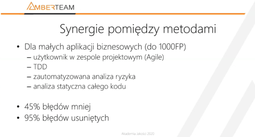 Cała prezentacja była oparta na analizie przeprowadzonej na 15 tysiącach projektów. Chyba każdy, gdzieś pod skórą czuje, że złożenie kilku praktyk, powinno przynieść wymierne korzyści. Teraz już wiemy jakie konkretnie. Dobrze było tego posłuchać.