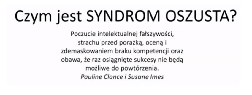 Chyba pierwszy raz zetknąłem się z pojęciem syndromu oszusta. Dobrze jest mieć świadomość takiego mechanizmu. Dzięki temu można coś z tym zrobić.