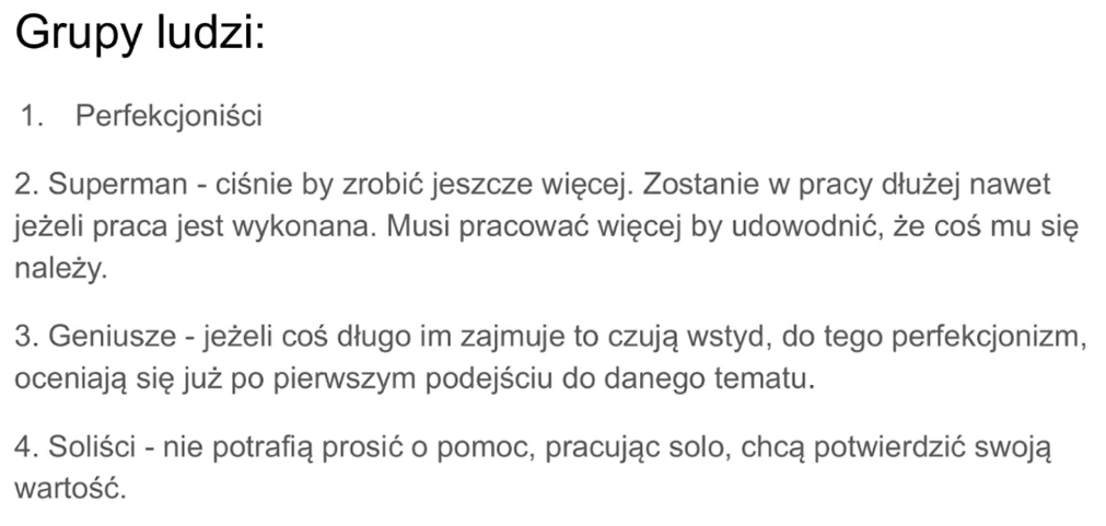 Prowadzący przytoczył też kategorie, do których można przyporządkować osoby, które taki syndrom wykazują.