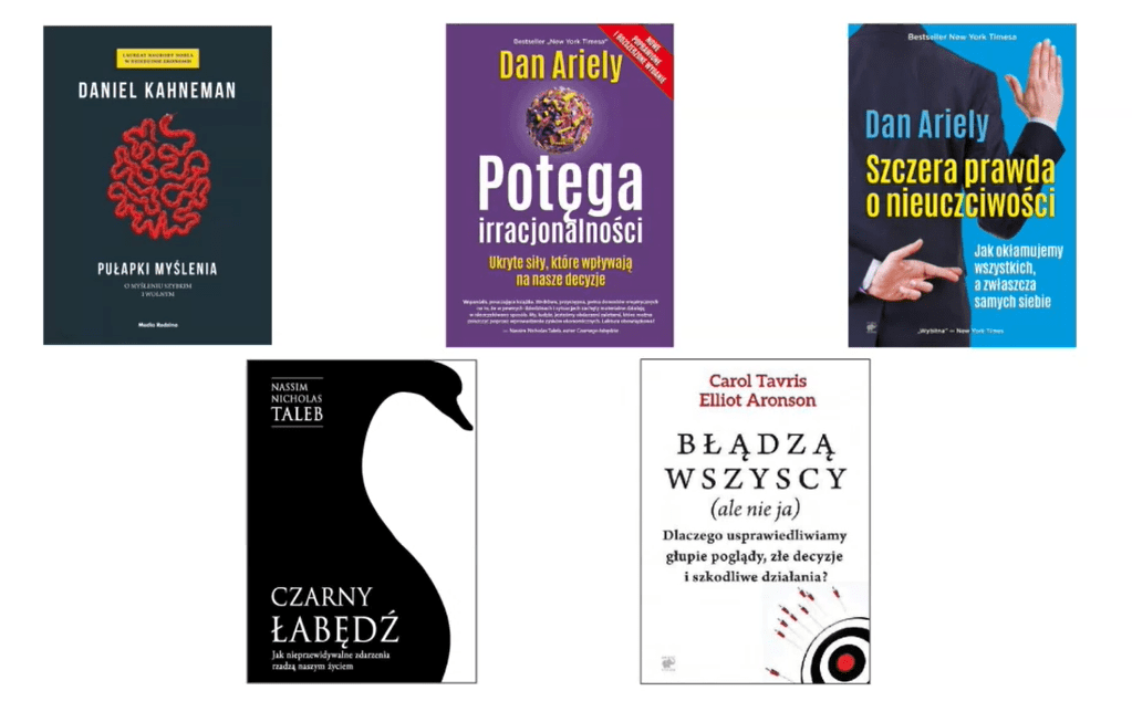 To tylko malutki wycinek, bo lista błędów poznawczych jest bardzo długa. Czym one są? Błędy poznawcze to pewne wady naszego umysłu, które mogą zaburzać nasz osąd, co w pracy testera może mieć szczególne znaczenie. Zdecydowanie temat do dalszego zgłębienia. Warto zbudować sobie choć trochę świadomości w tym obszarze. Pomocne mogą być książki polecane przez prelegentkę.