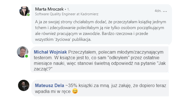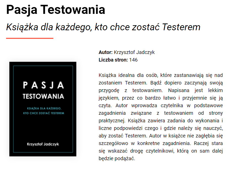Hubert, autor bloga To nie bug, umieścił „Pasję Testowania” na swojej liście Najlepszych książek na początku kariery Testera Oprogramowania. Przeczytaj jego opinię.