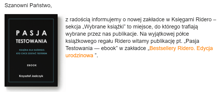 Moja książka „Pasja Testowania” znalazła się na liście bestsellerów serwisu Ridero oraz na liście wybranych książek z okazji 5. urodzin serwisu Ridero.