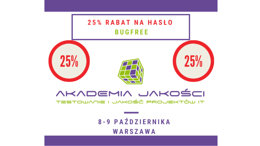 UWAGA! Dla Czytelników BUGFREE organizatorzy Akademii Jakości przygotowali specjalny rabat - 25% zniżki na udział w konferencji i szkoleniach!Użyj hasła: 25% BUGFREE Nie zwlekaj z rejestracją - ilość miejsc jest ograniczona! Co w programie? Program podzielony został na dwie części: wykładową i warsztatową.Sam decydujesz o wyborze! Podczas tegorocznej edycji swoją wiedzą podzielą się m.in:Piotr Ślęzak, …